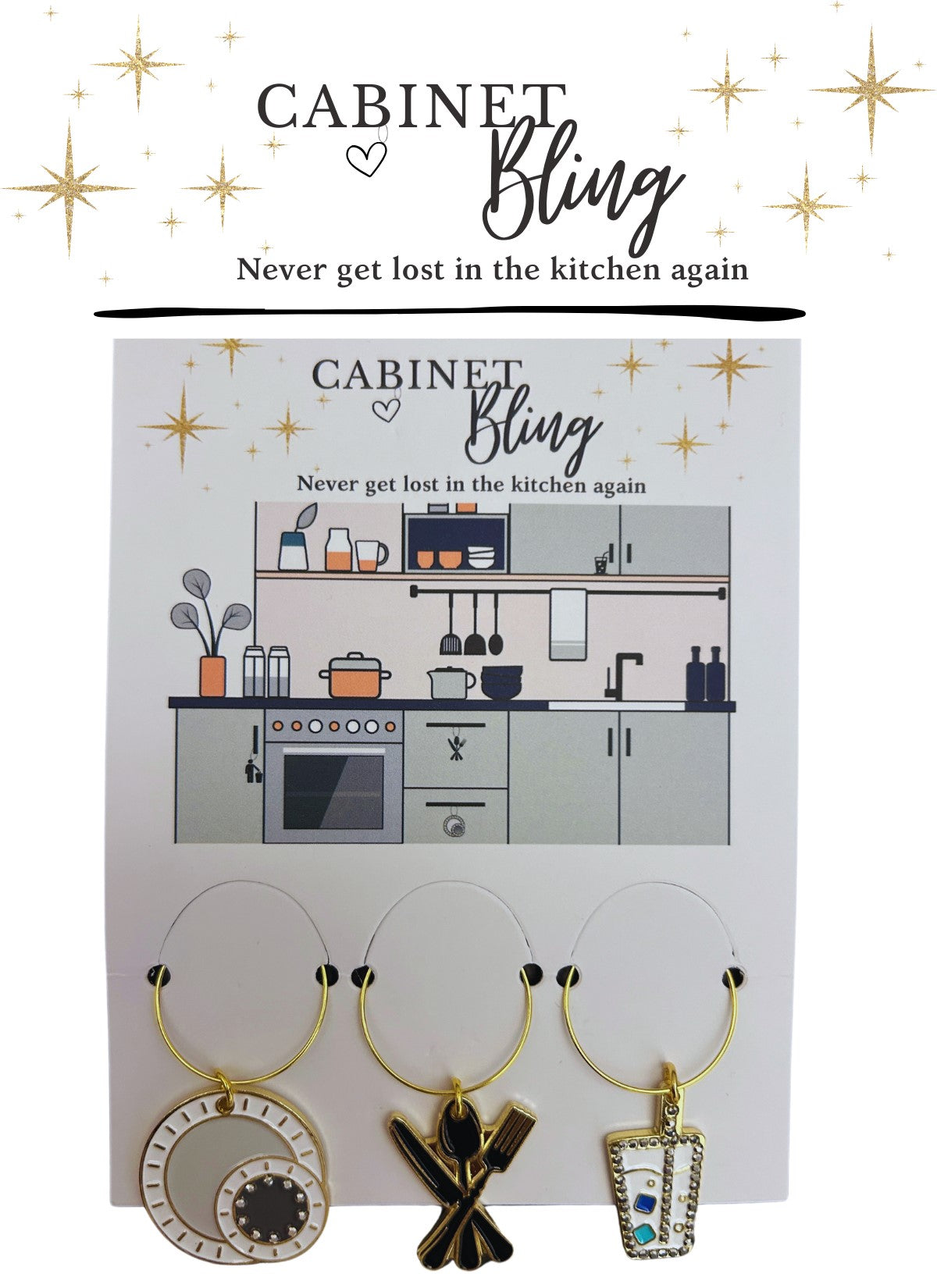 Say goodbye to the days of guests endlessly opening cabinets to find what they need! Cabinet Bling is the perfect combination of function and flair—adorable little charms designed to hang over your cabinet handles, so you always know exactly what's inside. Whether it's cups, silverware, or plates, each charm features a touch of sparkle, making your kitchen not only more organized but also a little more dazzling.